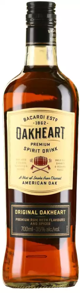 Bacardi Oakheart- напиток янтарного цвета, в насыщенном аромате которого ноты дуба сочетаются с дымными оттенками, также присутствуют тона кураги, чернослива, апельсиновой цедры, оттенки ванили. Вкус мягкий, бархатистый. Ромовый напиток употребляется в чистом виде, в составе коктейлей.